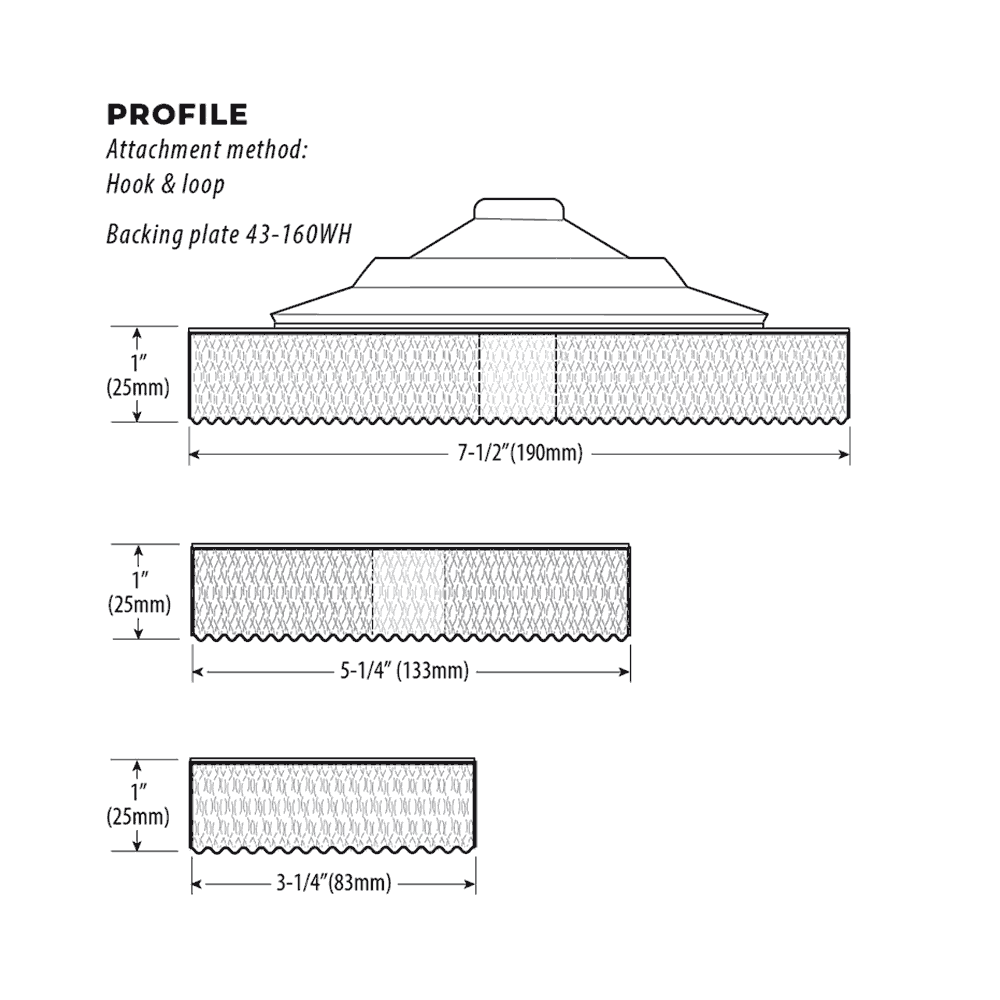 Recommended backing plates:5" (125 mm) for 5.5" pad, 6" (150 mm) for 6.5" pad