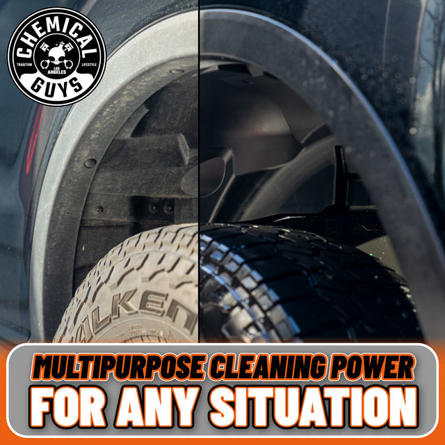 Chemical Guys Signature Series Orange Degreaser is a powerful citrus-based degreaser specially formulated to loosen and remove stubborn grease, oil, and grime . The combination of potent citrus extracts and hyperactive surfactants makes this product perfect for heavy-duty cleaning tasks like engine bays, undercarriages, tires, and tools .