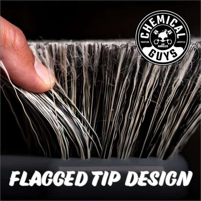 The Chemical Guys Wheel Works Medium Duty Wheel & Body Brush is a medium-soft yet powerful cleaning brush designed to loosen stubborn dirt and brake dust without damaging delicate surfaces. Its flagged-tip bristles clean thoroughly while significantly reducing the risk of scratches and swirl marks .