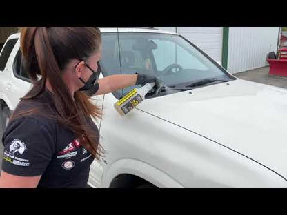 P&S Iron Buster, de la gamme Double Black, est un nettoyant puissant au pH neutre qui dissout efficacement et en toute sécurité la rouille, la poussière de frein et autres contaminants ferreux présents sur la peinture et les jantes. Au contact des particules de fer, le produit devient violet, signe visuel de son efficacité.