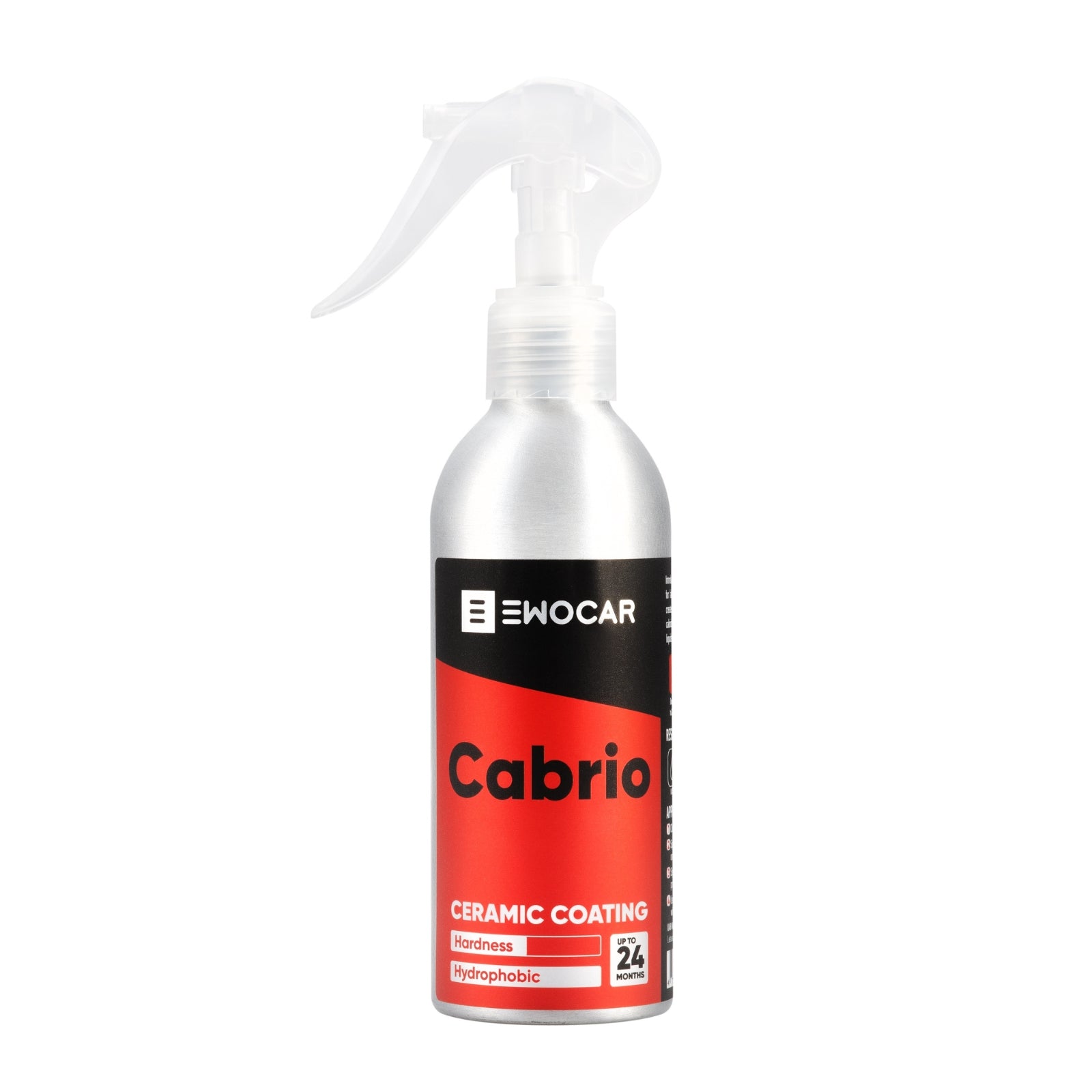 De Ewocar Cabrio is een ademende, keramische textielimpregnatie speciaal ontwikkeld voor cabrio‑softtops, maar ook uitstekend geschikt voor autostoffering, vloermatten, schoenen en andere huishoudtextielen. Vormt een onzichtbare, water‑ en vuilafstotende nanolaag die de ademende eigenschappen en het uiterlijk van het materiaal behoudt.